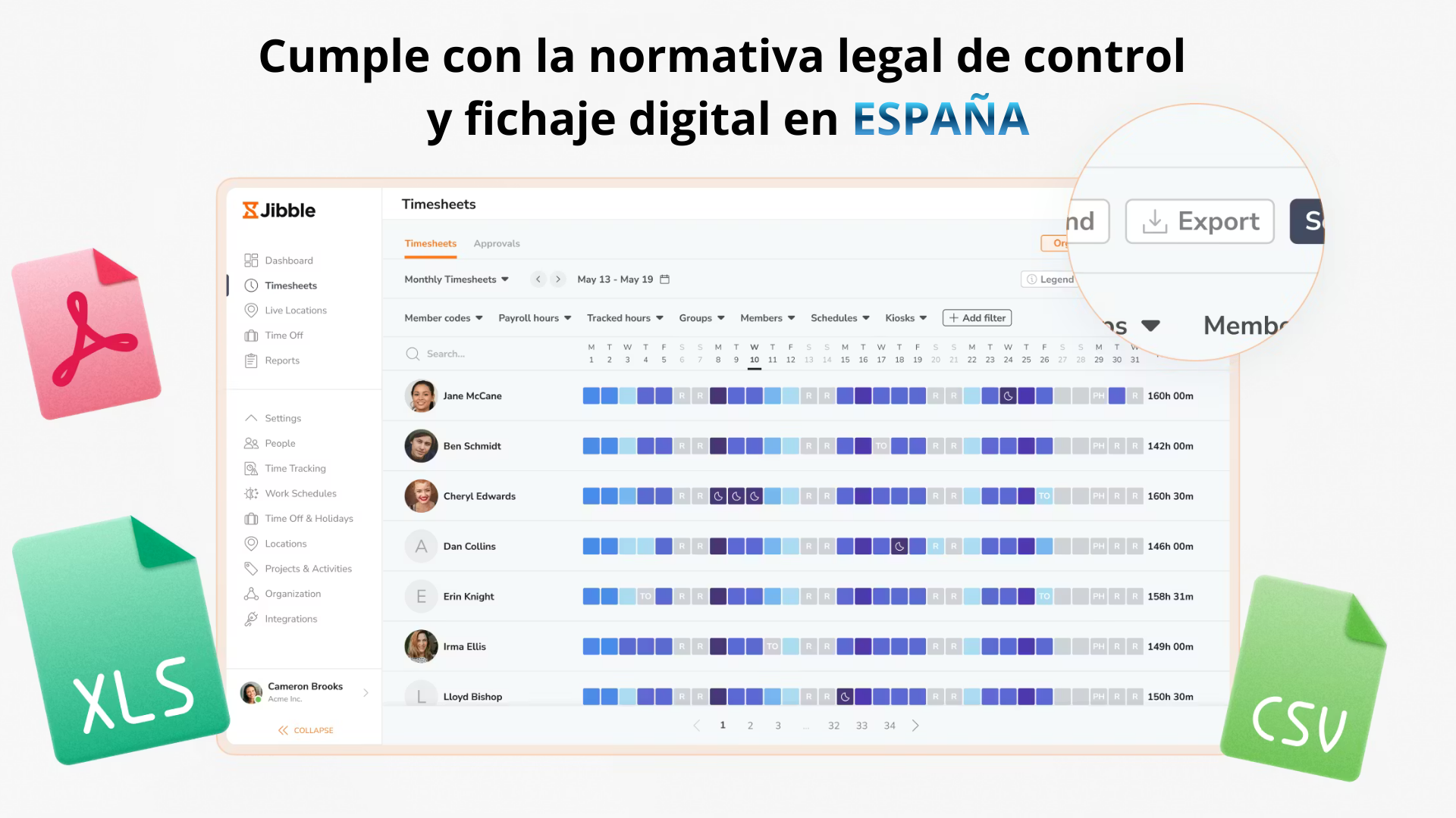 Visualiza entradas, salidas, ausencias y horas extra en tiempo real.